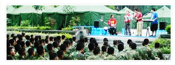 In addition, Chung Nam also believes that psychological traumas of the bereaved people must be addressed. Hence, Ada simultaneously initiated a music mass counseling program (香港特種樂隊) in the disaster areas beginning from May 26. Within a month, Ada led two trips to Sichuan to provide music and play therapy services in various hardest-hit disaster areas, directly reaching out to almost 20,000 bereaved people in a variety of audiences such as the PLA camps, hospitals, schools, settlement areas, summer camps, city squares, village markets. On the whole, the most typical stage for their “music mass counseling” was a safe crossroads where hundreds of people could sing and dance with the music squad for an hour.